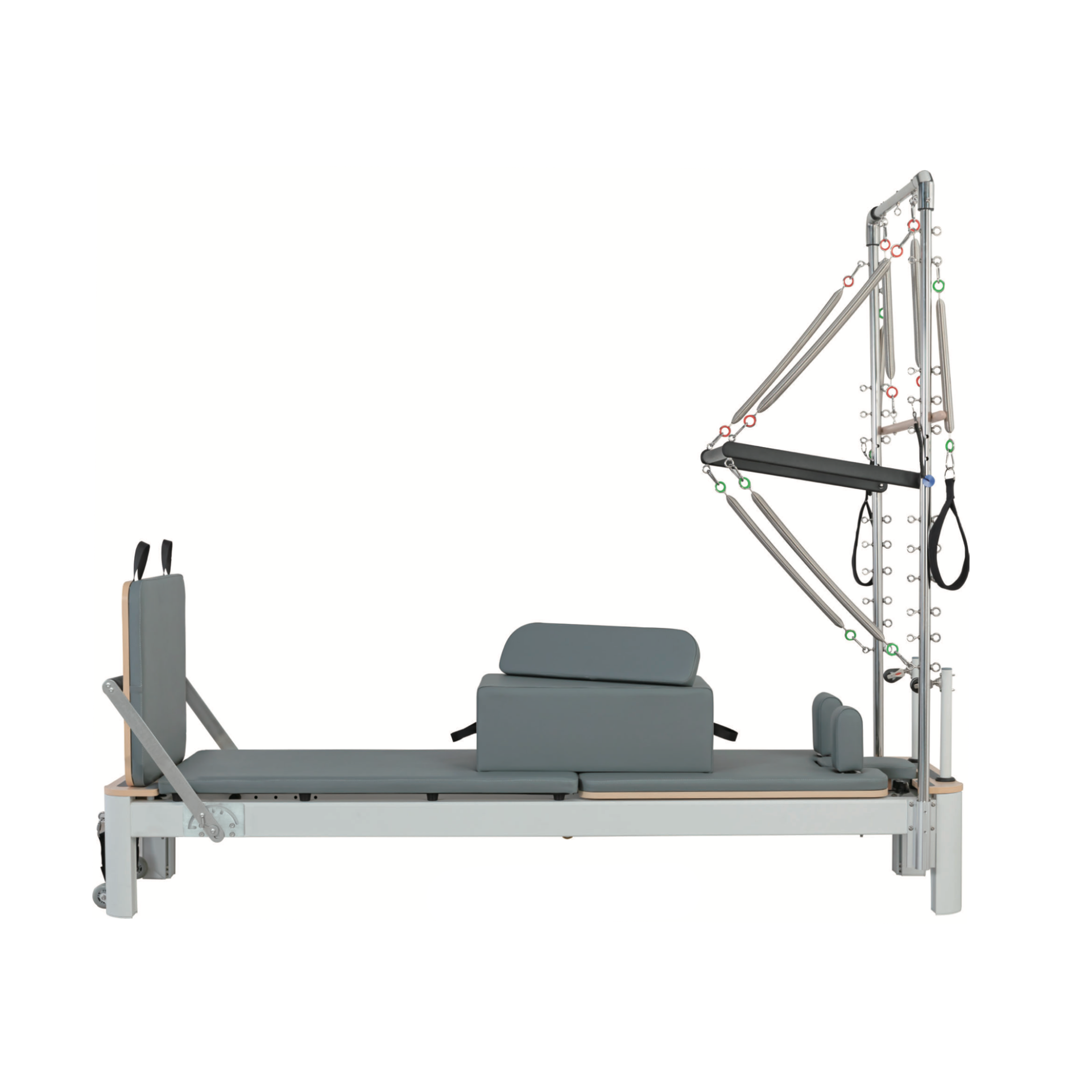 The X-RIVAL Metal Pilates Reformer 2-in-1 features a refined half-height tower frame and elevated platform, offering greater range and challenge for Pilates enthusiasts. Designed to increase the number of anchor points for resistance bands and loops, the half tower enables more complex and diversified training movements without sacrificing space or stability.