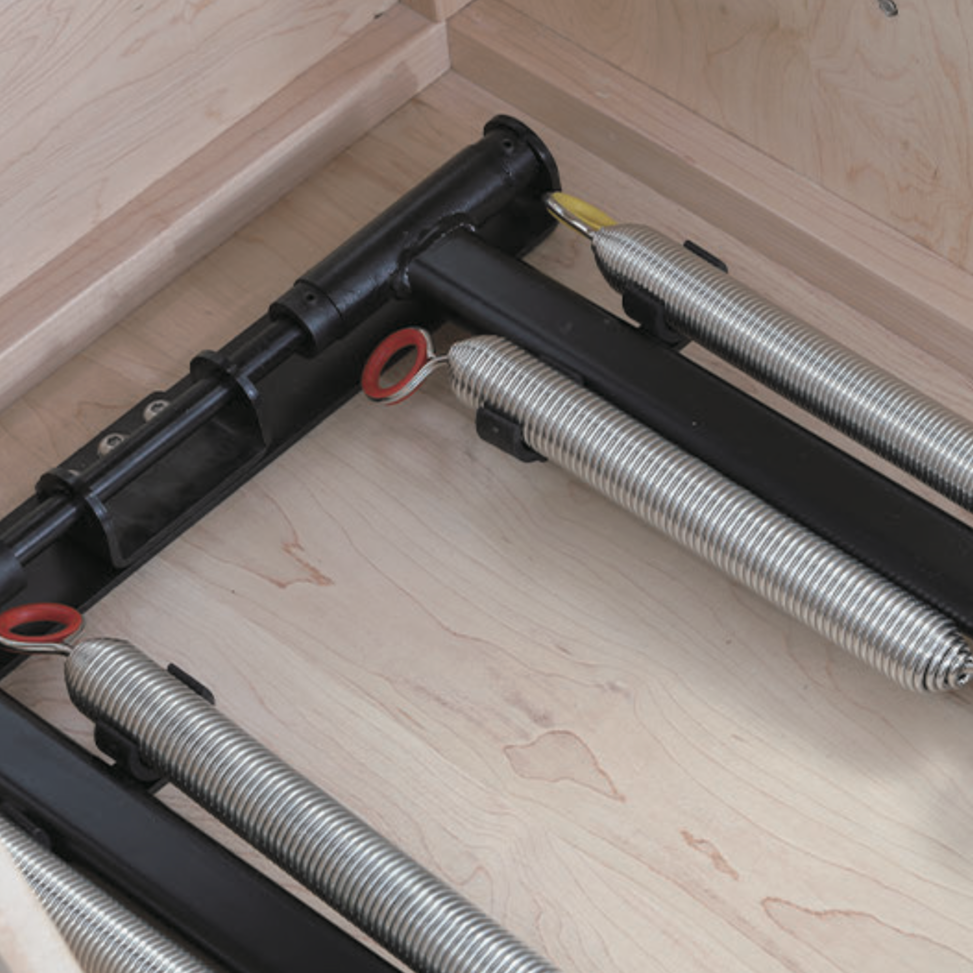 Crafted from imported maple and oak wood, this Pilates Chair features a high-end finish and exceptional durability. The padded pedal and seat are upholstered with soft PU/microfiber leather layered over high-density rebound foam for enhanced comfort. Equipped with a robust spring system and four-level resistance hook adjustments. Detachable handrails offer height flexibility and support for a wide range of exercise intensities.