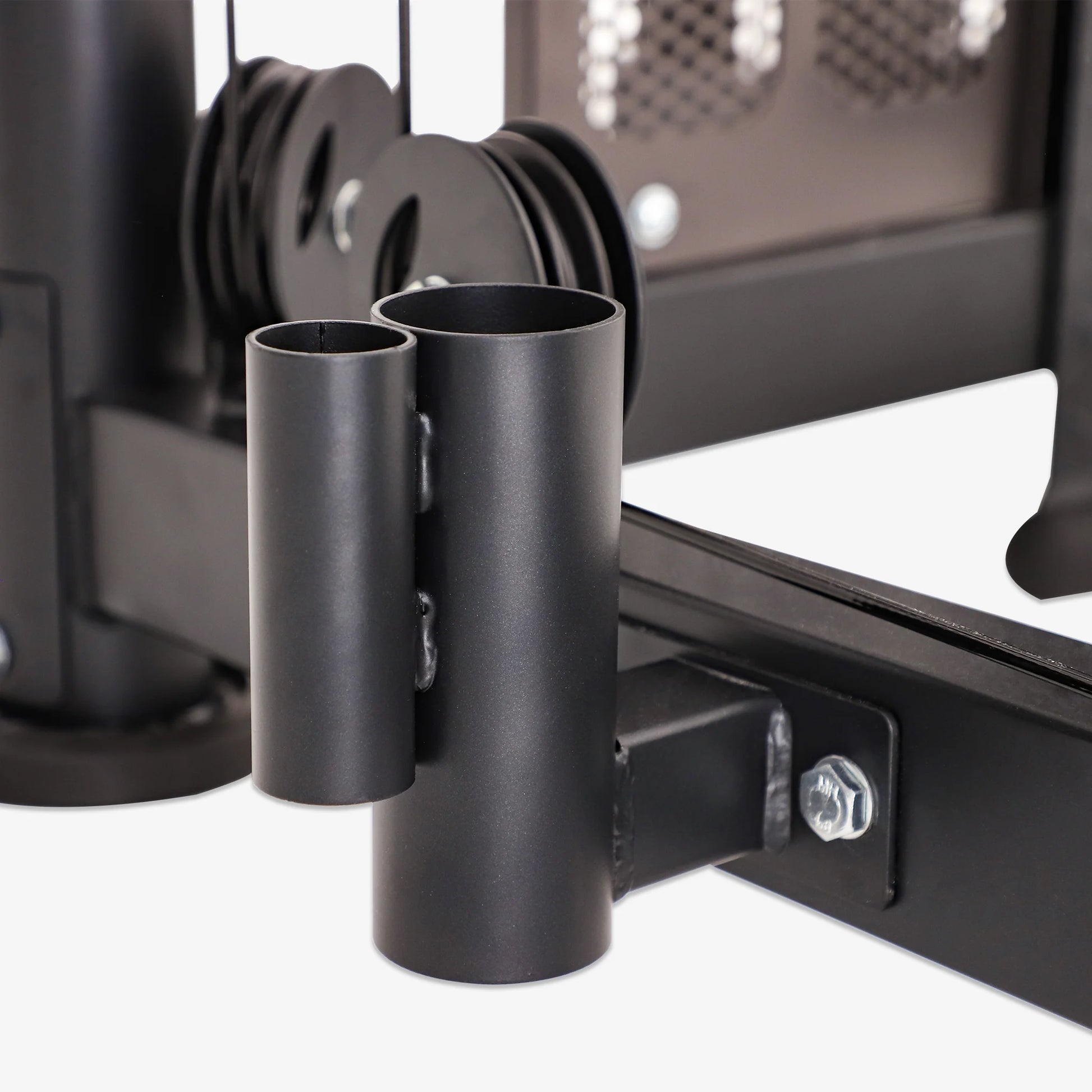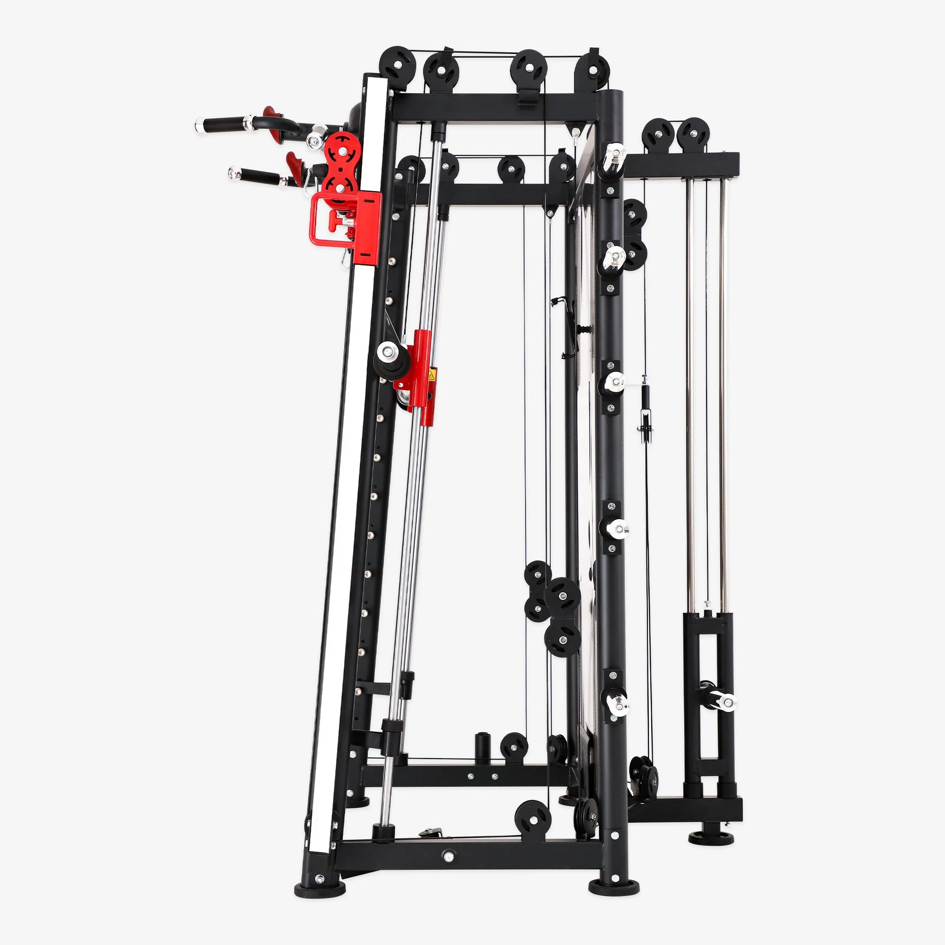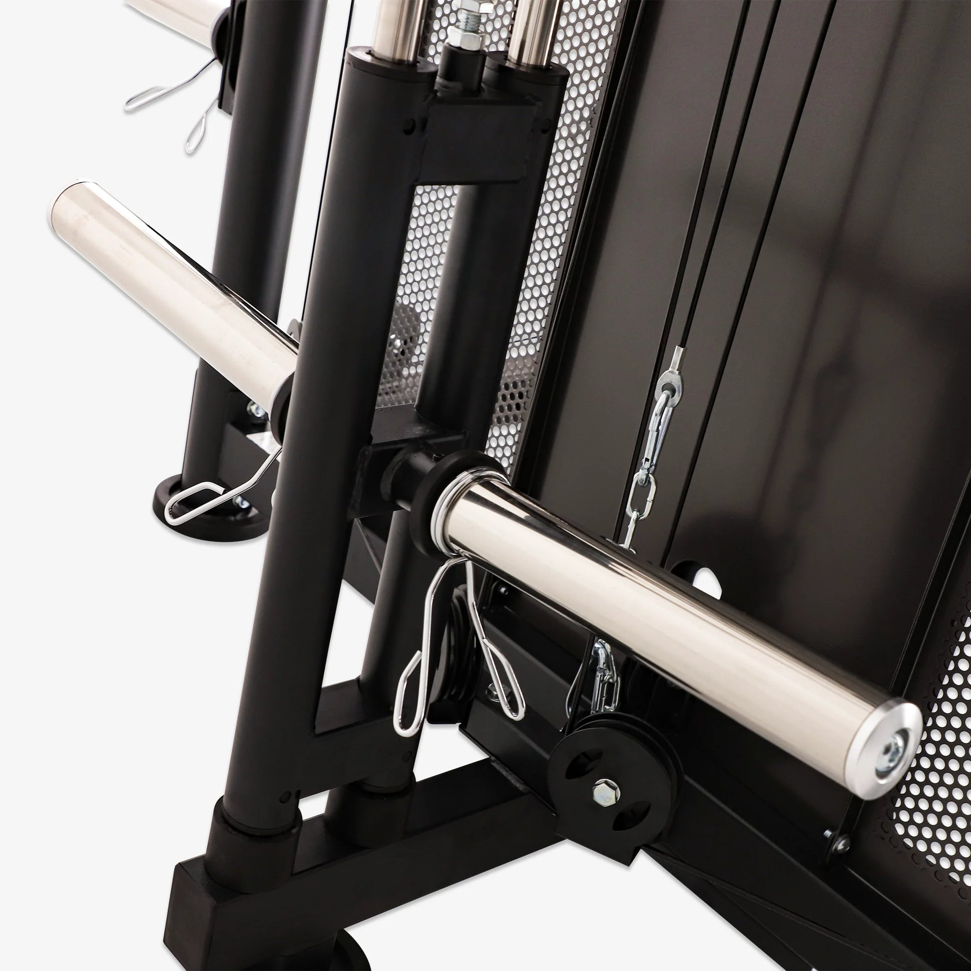 Crafted from heavy-duty alloy steel and finished with a durable black-and-yellow powder coating, the AL-3000Y offers both durability and striking aesthetics. The counterbalanced Smith bar glides on commercial-grade guide rails for smooth lifting, while aircraft-grade steel cables (rated to 2,000 lb) ensure long-lasting cable performance. Integrated Olympic plate storage pegs keep your gym organized, while multi-functional press arms and pulley systems expand your exercise options.