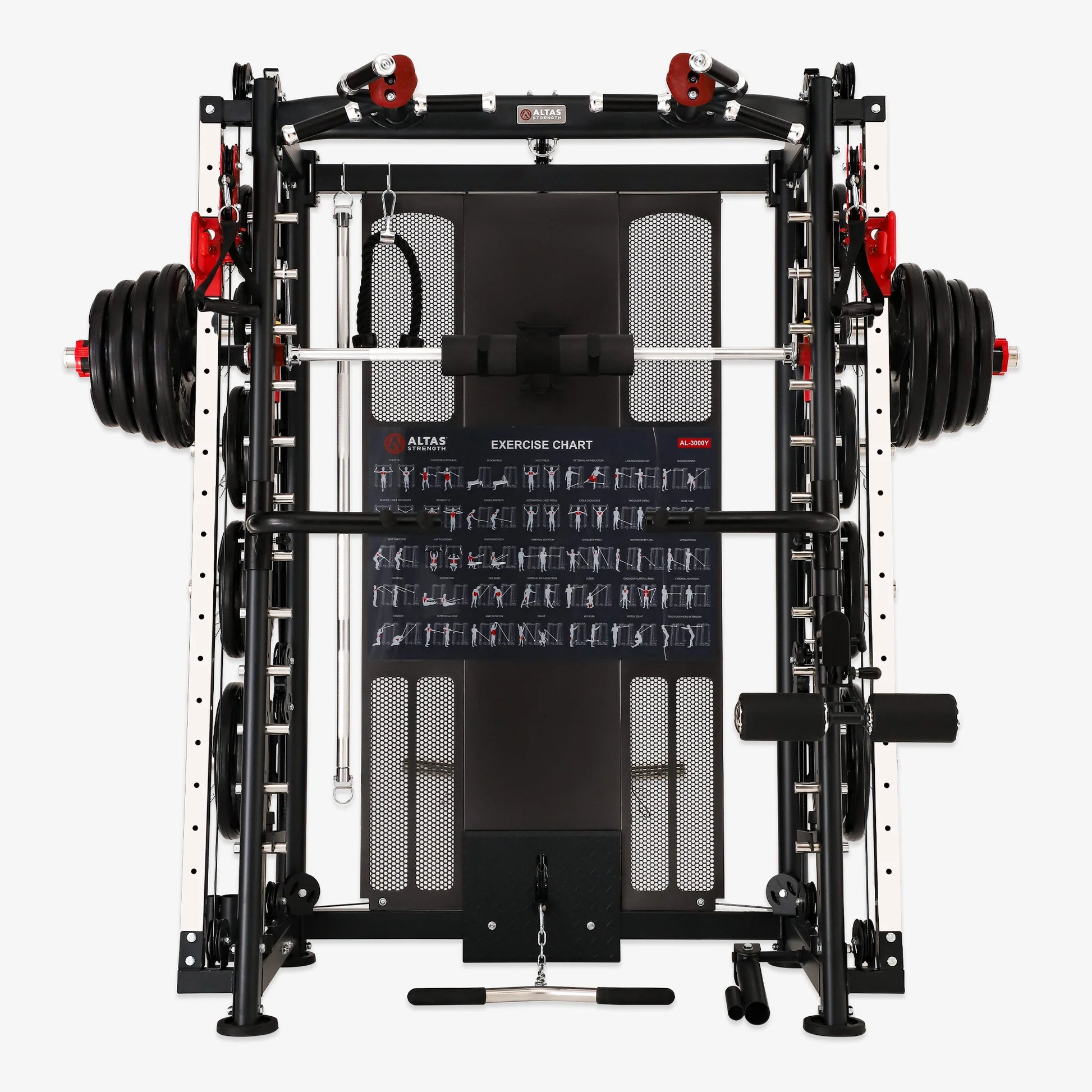 The ALTAS AL-3000Y Smith Machine is a true all-in-one light-commercial training station. Combining a power rack, Smith machine, functional trainer, dip station, chin-up bar, leg press, core trainer, and low row, it delivers the versatility of a full gym in one compact unit. Whether your goal is building strength, developing muscle, or enhancing endurance, the AL-3000Y adapts to your training demands with reliability and efficiency.